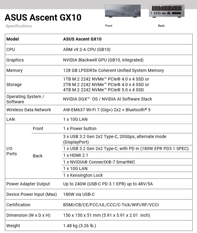 ASUS Ascent GX10 AI Supercomputer Mini PC Powered by Nvidia GB10