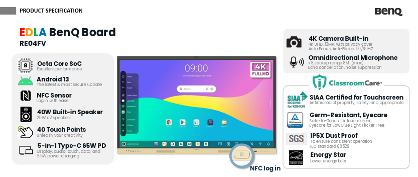 BENQ RE04FV 86" 4K ANDROID Interactive Display With Camera
