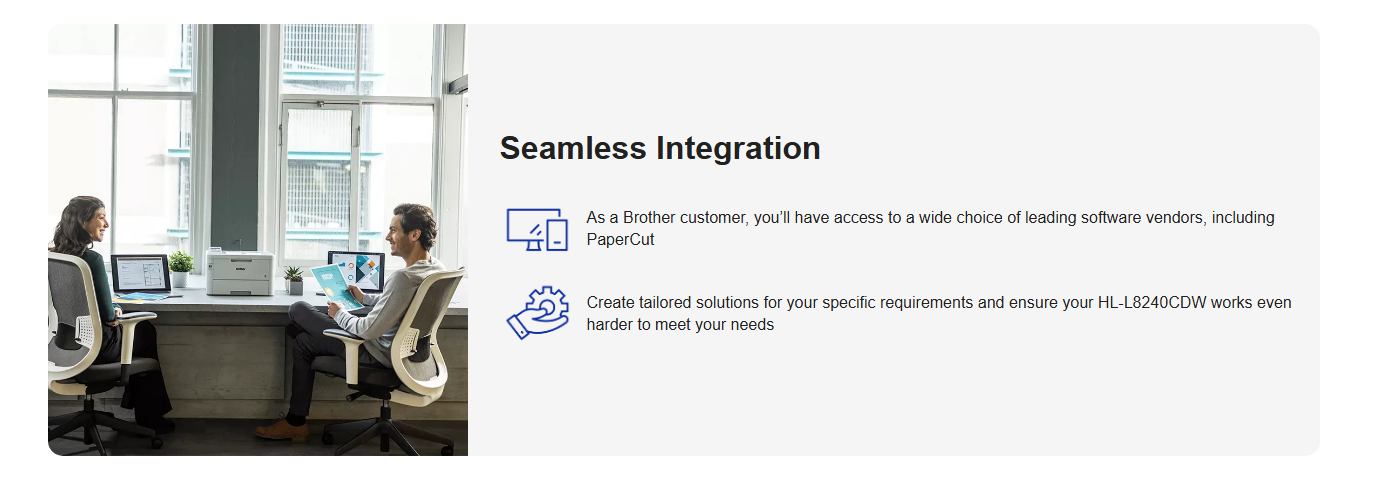 Combining professional performance with fast print speeds, minimal maintenance, and long-lasting supplies. The compact, whisper-quiet HL-L8240CDW has been expertly engineered to feature the latest industry-standard security, with flexibility to tailor the device to suit your business. Be confident that this colour LED will meet the needs of your office with ease.