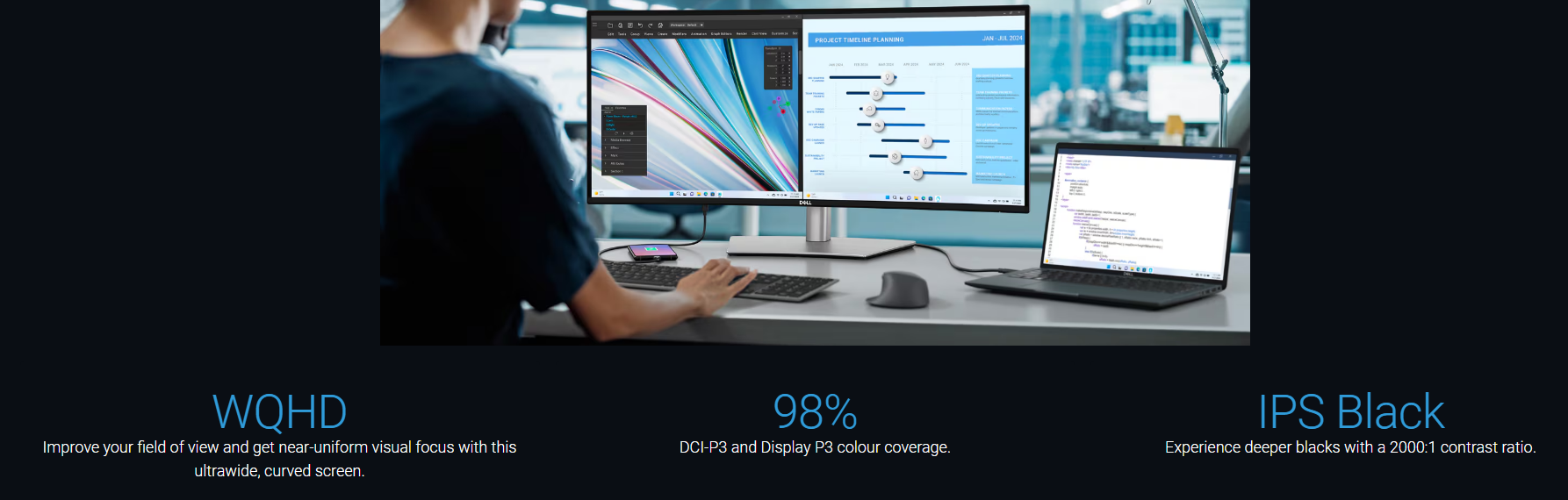 DELL U-SERIES 34" (21:9) IPS CURVED UWQHD 3440X1440 120HZ HDMI DP RJ45 USBA USB-C THUNDERBOLT HEIGHT ADJUSTABLE