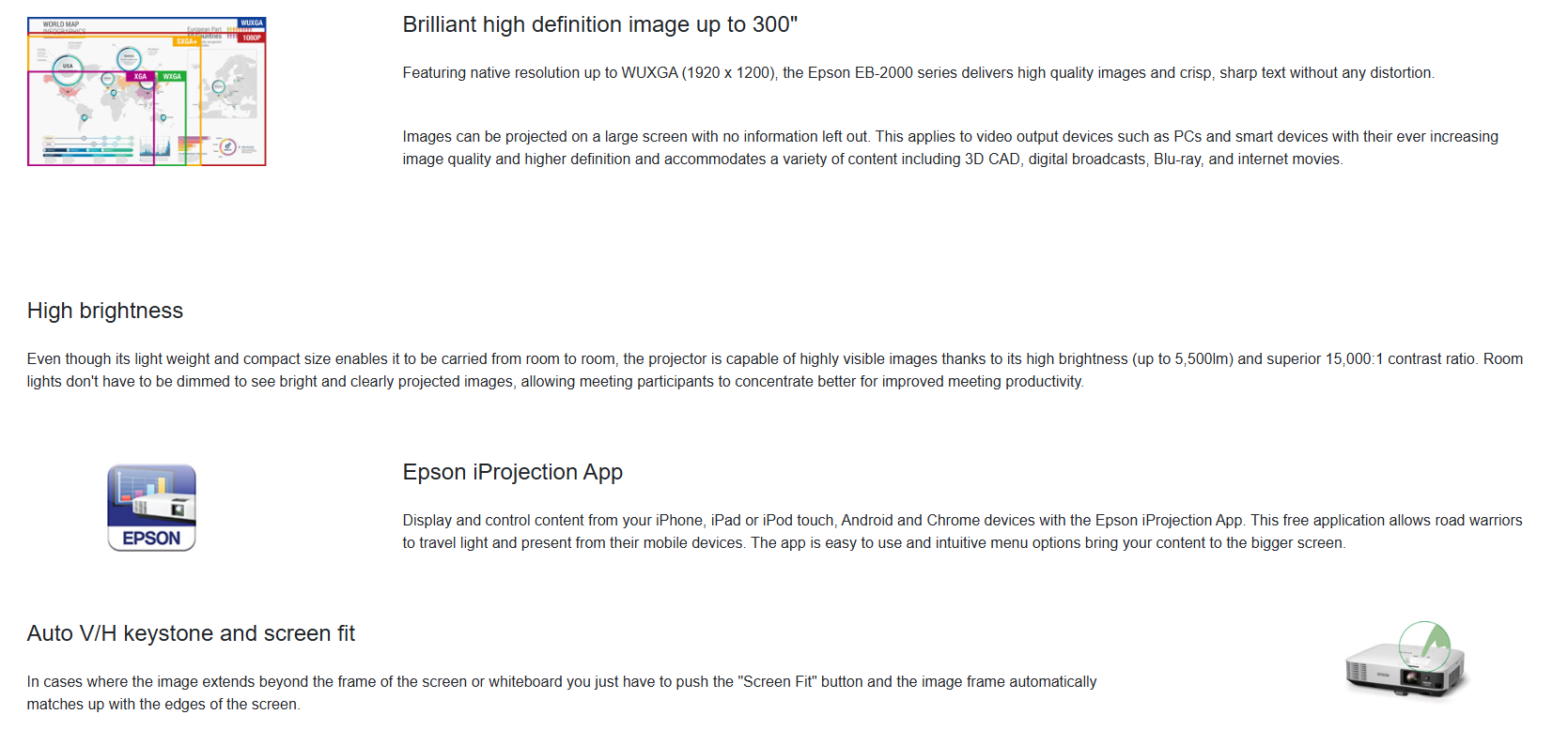 • Crisp clear resolution – WUXGA image resolution (1920 x 1200)