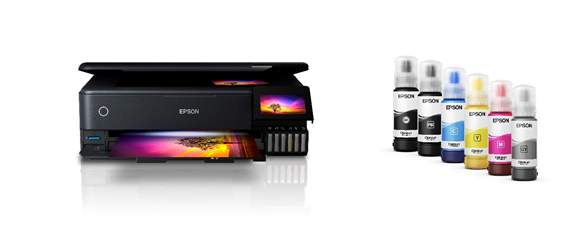 For one upfront price, the Epson EcoTank Photo ET-8550 printer comes with enough ink in the box so you can print 5,500 pages in black1 / 4,900 pages in colour1 without worrying about ongoing ink replacement and costs.