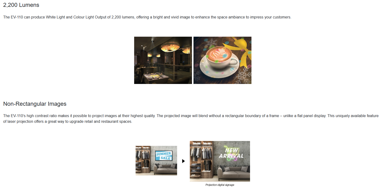 • NEW Bright Images – up to 2,200 lumens colour/white brightness