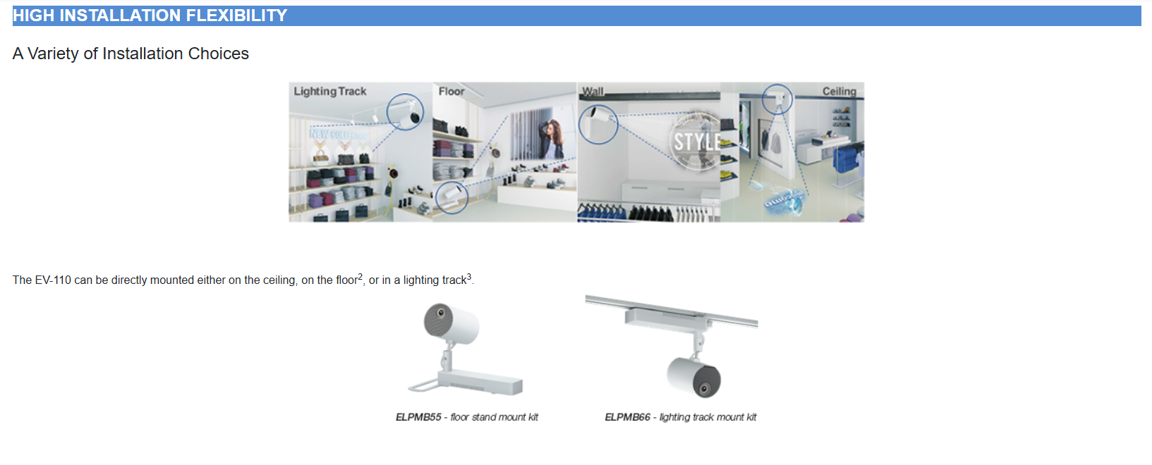 • NEW Lighting track option – ELPMB66W is compatible with lighting tracks (ERCO and EUTRAC model only)