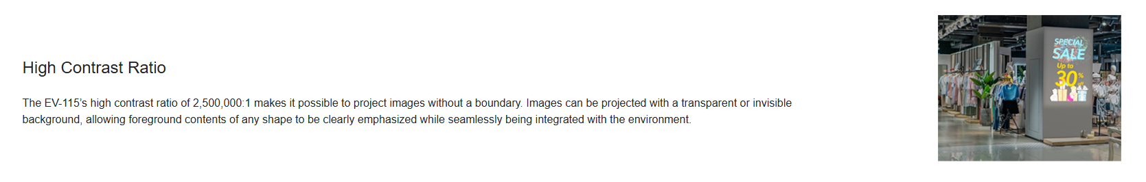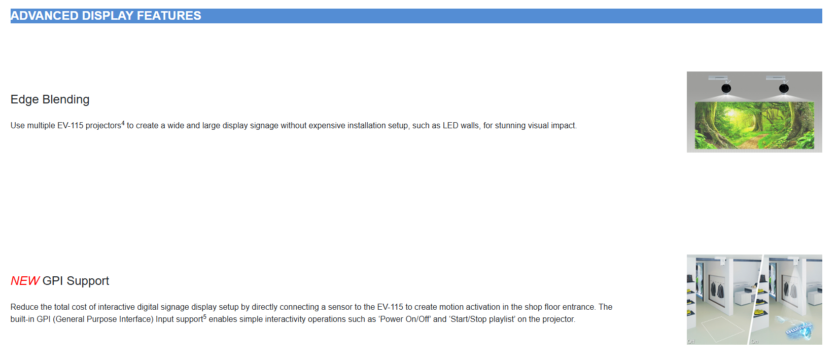 • Scalable, for an array of applications – install multiple EV-110 projectors and utilise Edge Blending technology for versatile, breathtaking displays