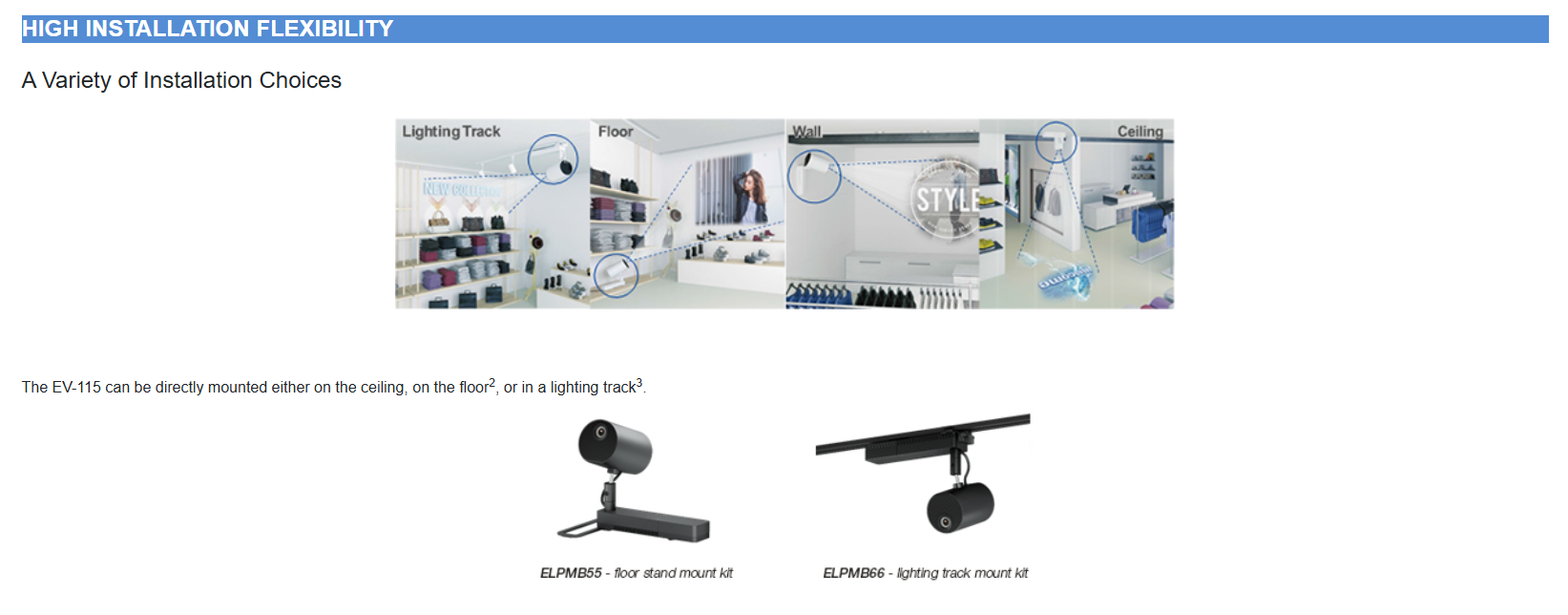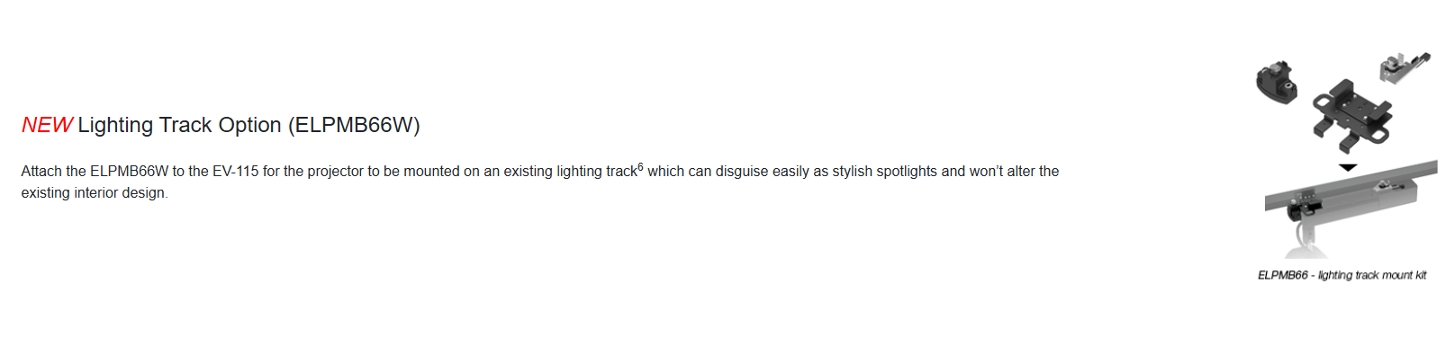 • NEW Lighting track option – ELPMB66W is compatible with lighting tracks (ERCO and EUTRAC model only)
