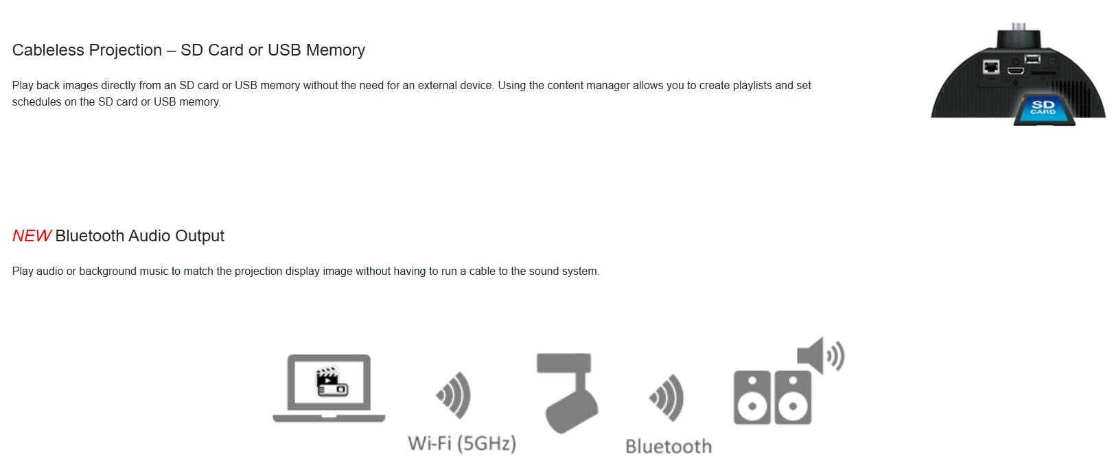 • Expansive connectivity – HDMI, SD card, LAN and USB-A for direct content display and storage when needed