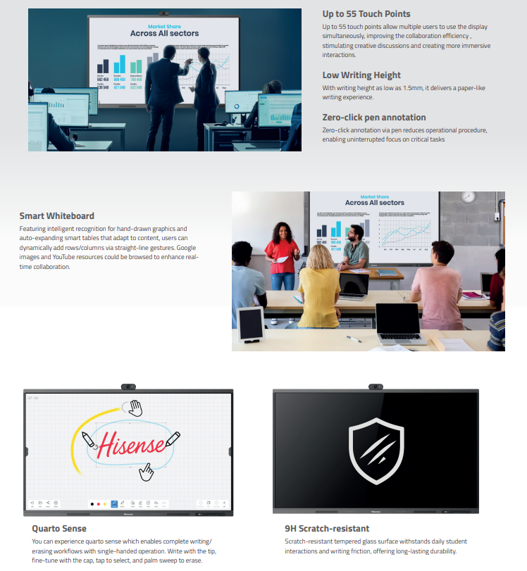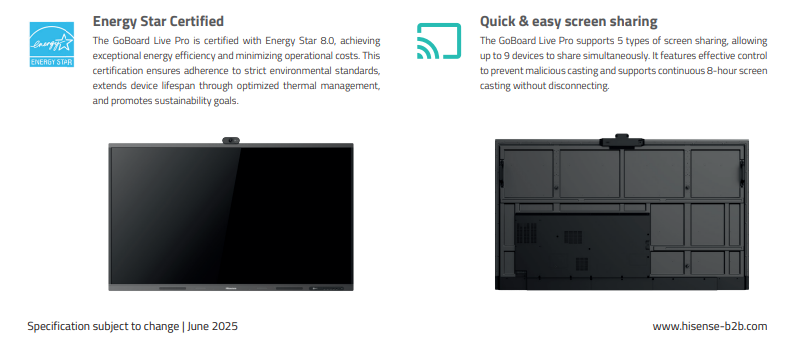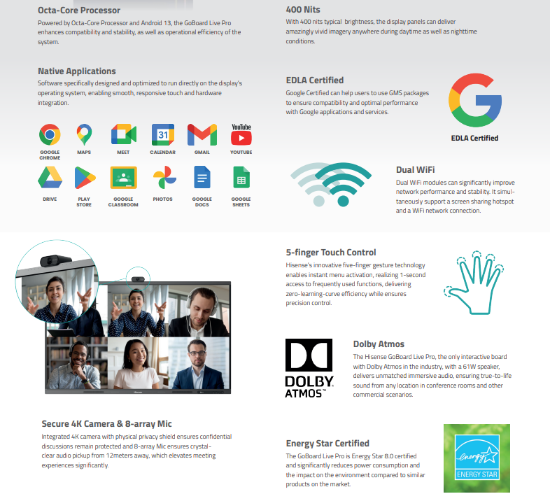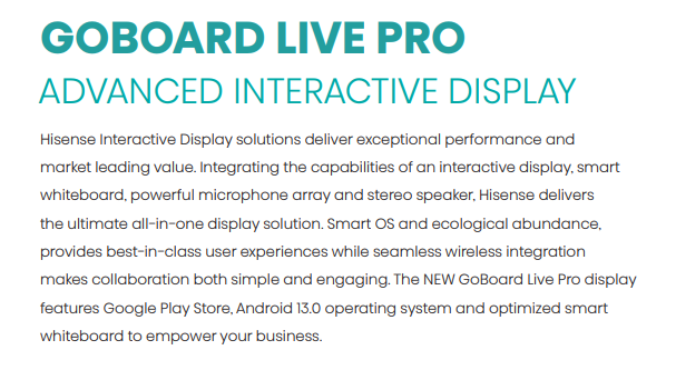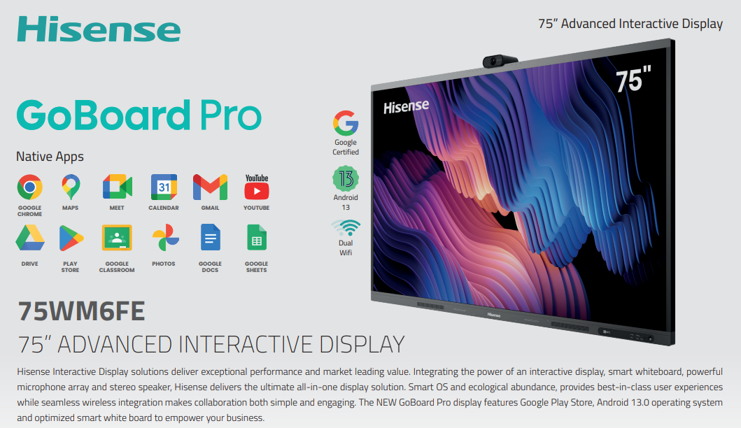 Hisense 75" GoBoard Live Pro 4k Google EDLA Certified Android 13 Interactive Display with Camera