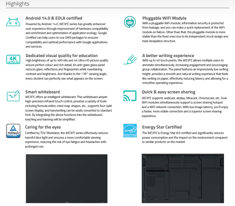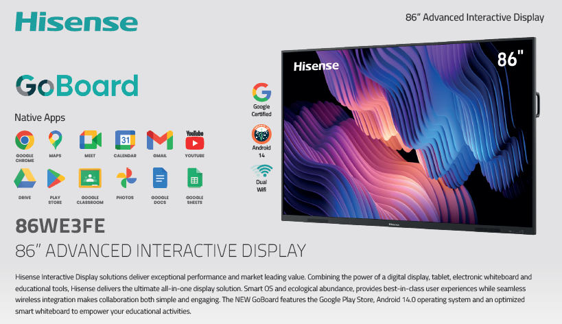 • Hisense GoBoard 86" 4K UHD Google EDLA Certified Android 14 Interactive Display