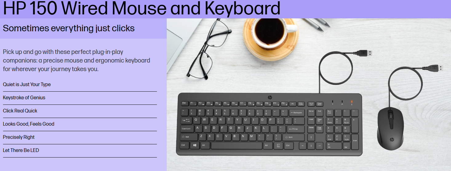 HP 150 Wired Keyboard & Mouse Combo