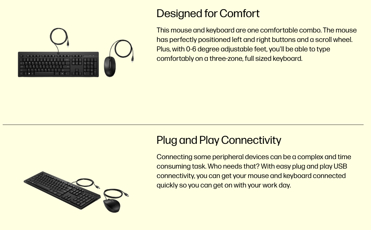 HP 225 G2 Wired Keyboard & Mouse Combo