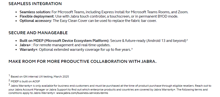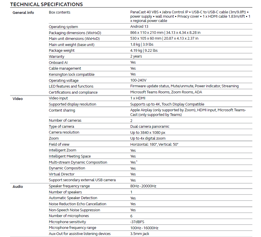 JABRA PANACAST 40 VIDEOBAR SYSTEM