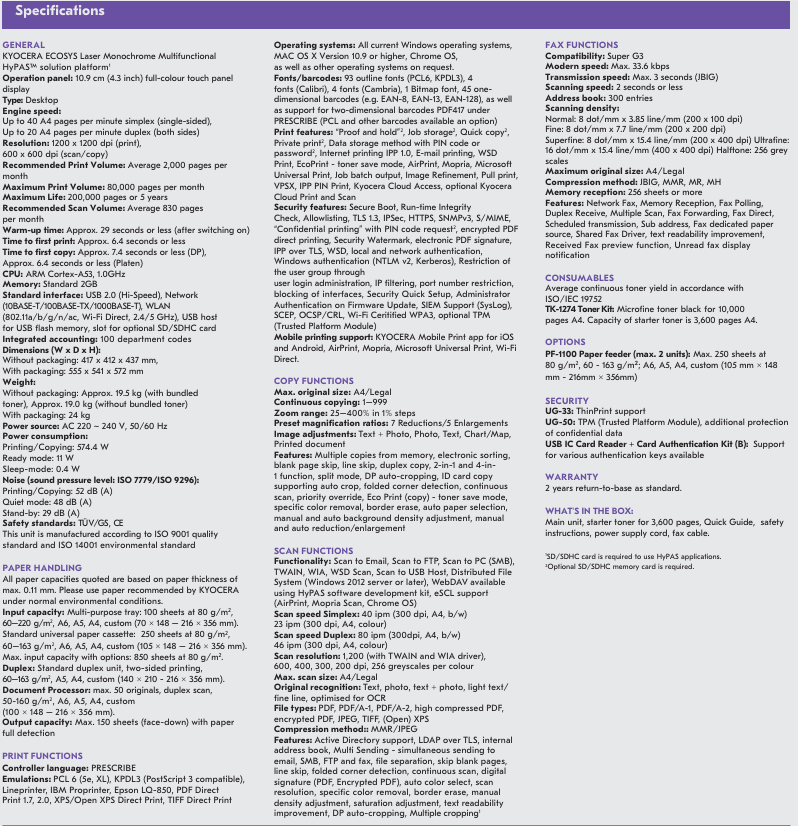 Kyocera ECOSYS MA4000WIFX 40ppm A4 Wireless Mono Multifunction Laser Printer with Fax
