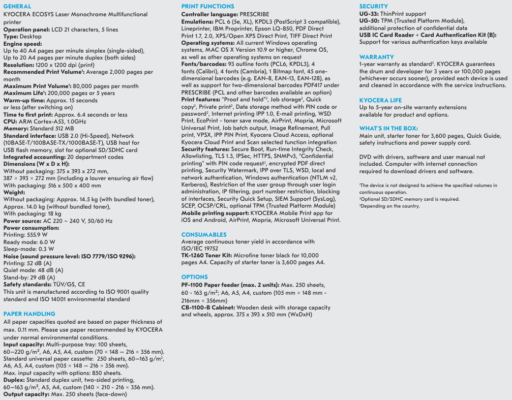 Kyocera ECOSYS PA4000X Mono Laser with Ethernet