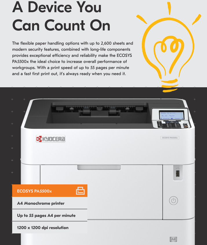 * 500 Sheet Paper Tray + 100 Sheet Multipurpose Tray (max 2,600 sheets)