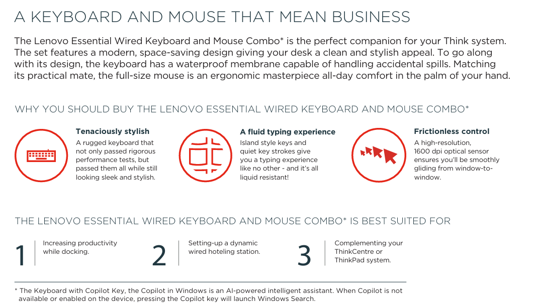 LENOVO ESSENTIAL WIRED COMBO KEYBOARD & MOUSE (UPGRADED WITH COPILOT)