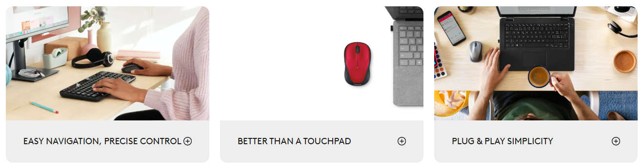 Stay productive longer with M235. Its comfortable, contoured shape follows the natural curve of your hand. The mouse is also designed for both right- and left-handed users allowing you to switch the left and right click buttons via Logitech Options™ Software.