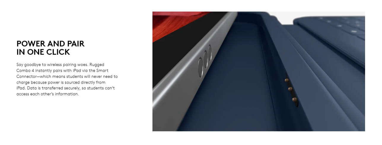 Meet Rugged Combo 4, the versatile classroom companion for the new generation of iPad. Give students the power to engage with content holistically through four use modes: Type, Sketch, Read, & View. Best of all, Rugged Combo 4 is durable and schoolyard ready with military-grade drop protection, pluck-proof keys, and a full-size keyboard that's sealed against spills. Plus, it connects securely via Smart Connector so students never have to worry about charging or pairing.