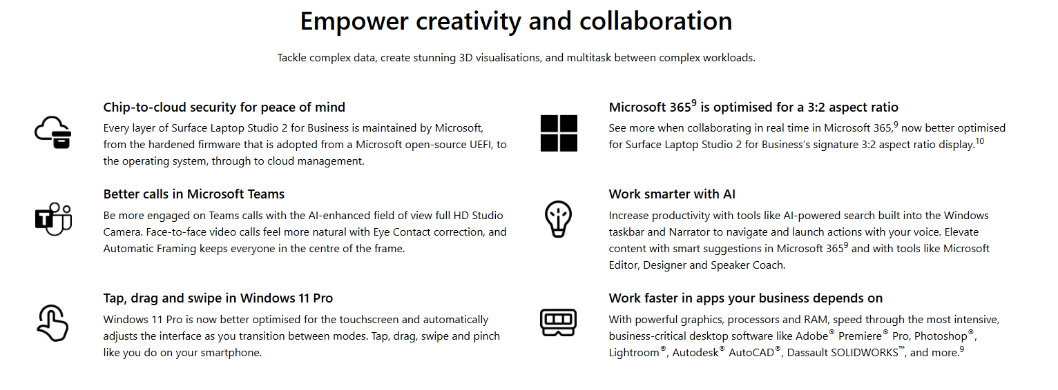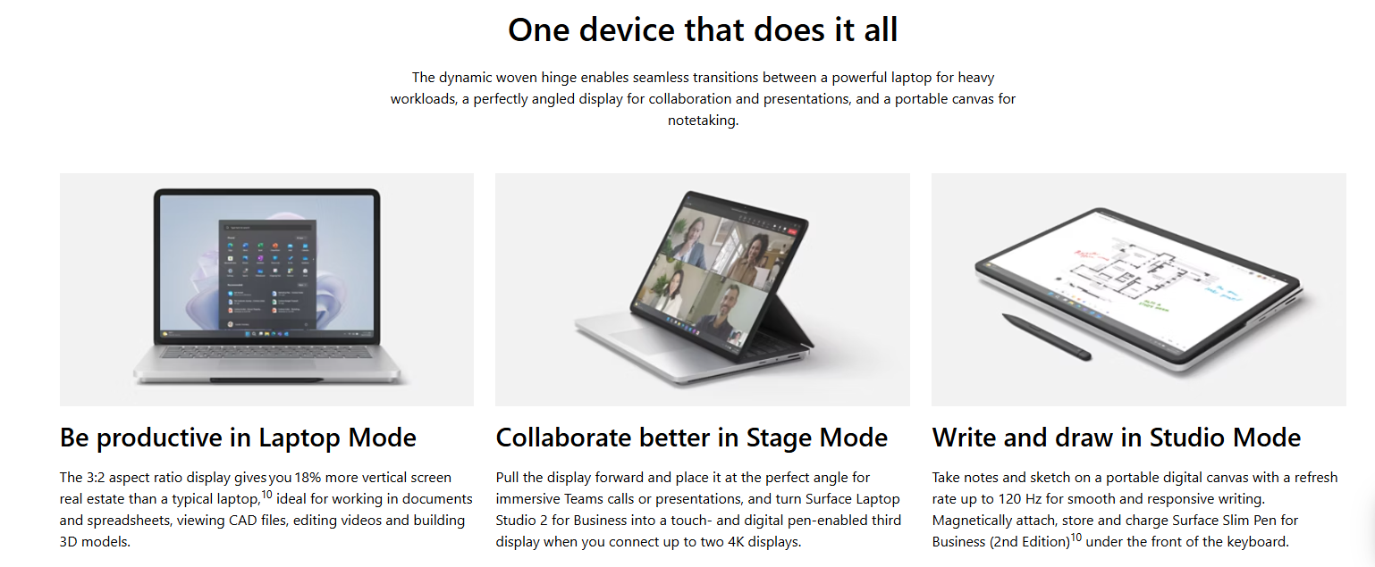 • MICROSOFT SURFACE LAPTOP STUDIO 2 FOR BUSINESS 14.4" i7 16GB 512GB W11P