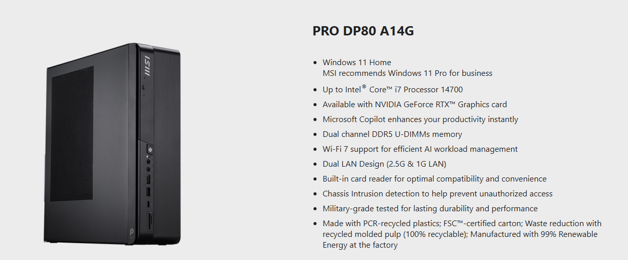 | CPU | Intel® Core™ i7-14700 (33M Cache, 2.10 GHz up to 5.40 GHz) |