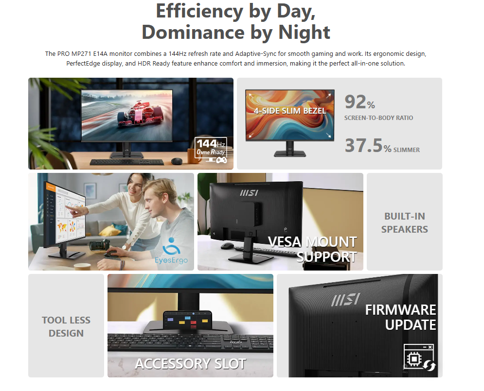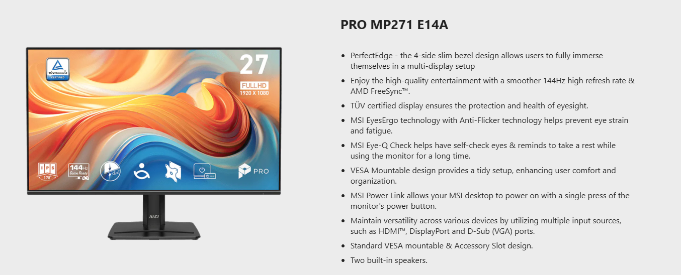 • MSI PRO MP271 E14A 27" FHD 144Hz IPS Business Monitor