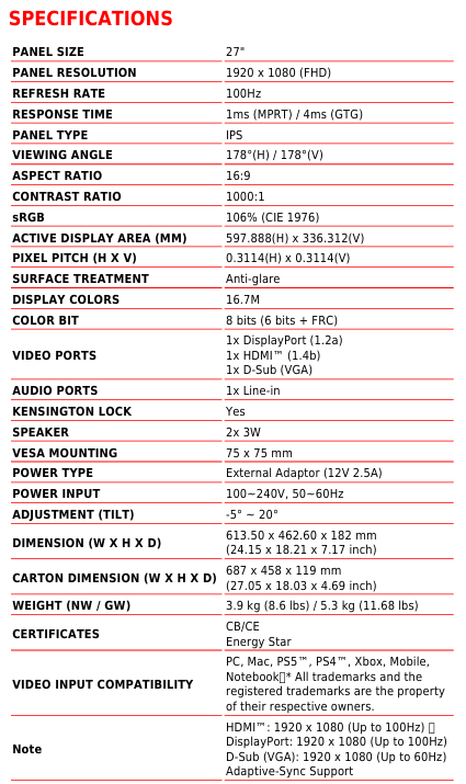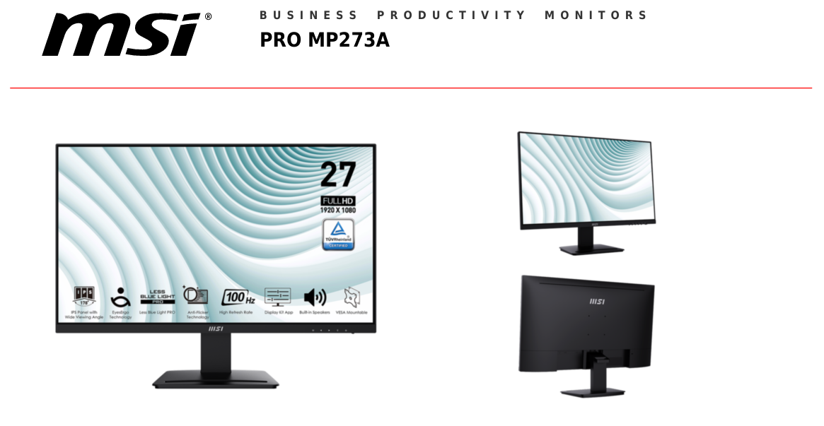 • MSI PRO MP273A 27" FHD 100Hz IPS Business Monitor
