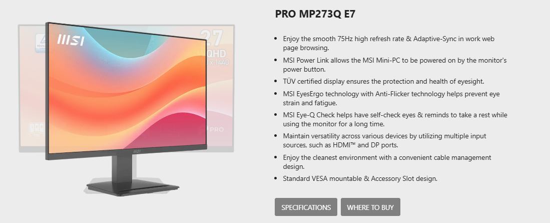 • MSI PRO MP273Q E7 27" QHD IPS Business Monitor