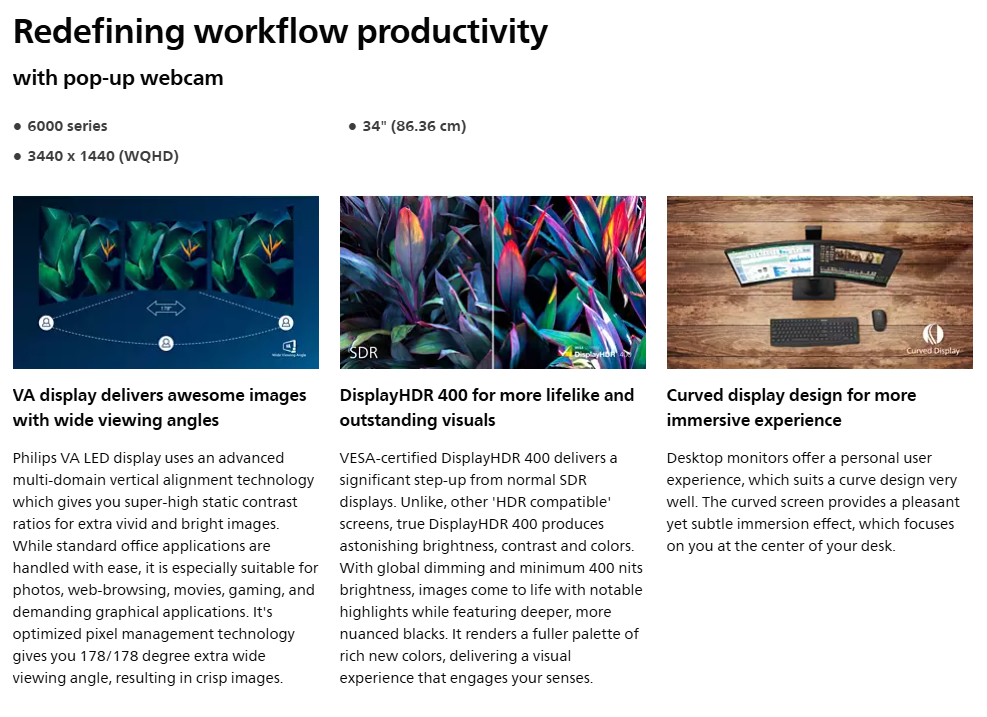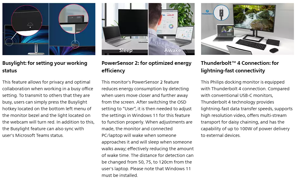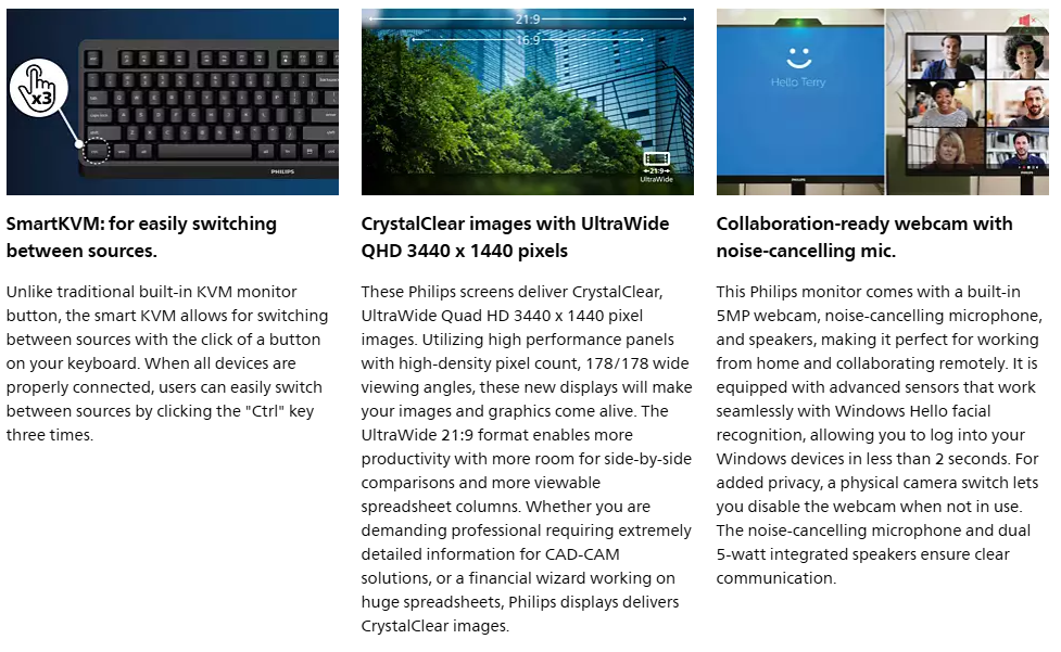 Philips 34" UWQHD Thunderbolt Video Conferencing Business Monitor (100W USB-C PD + Hub + Webcam)