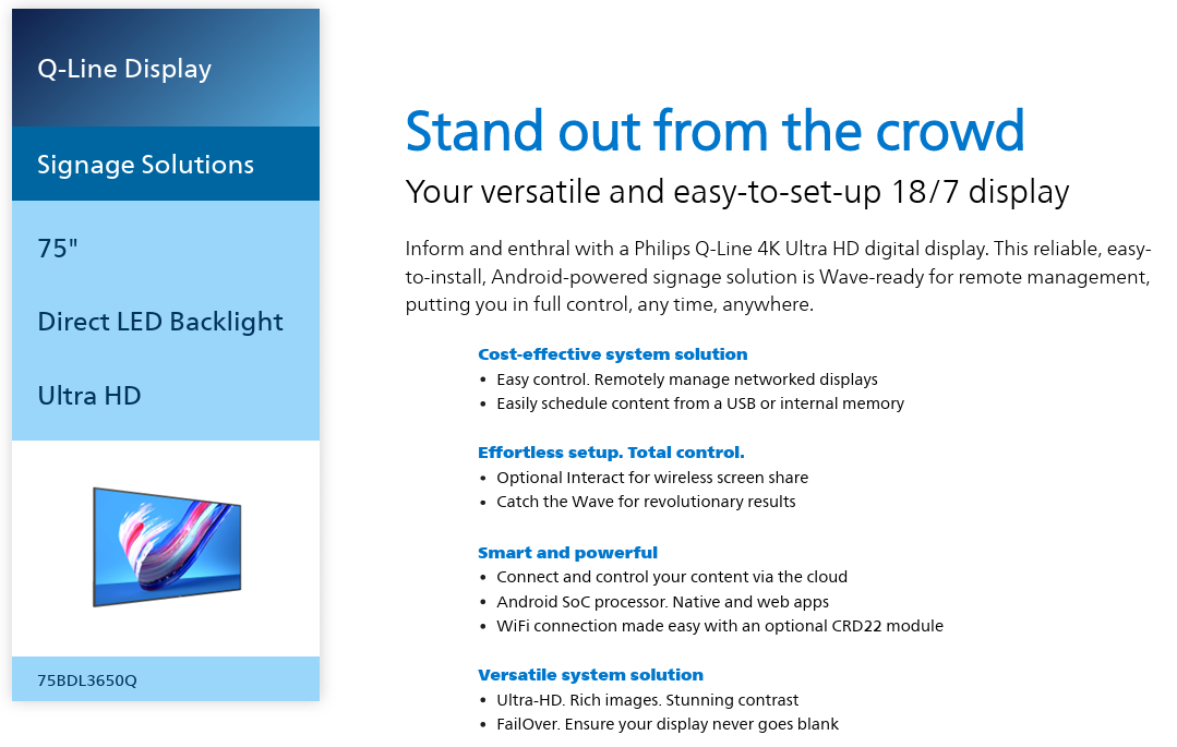 Philips Q-Line 75" 4K Android 10 Digital Signage Display