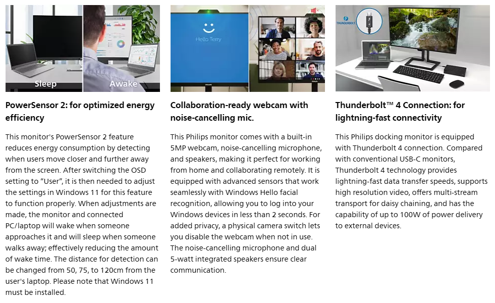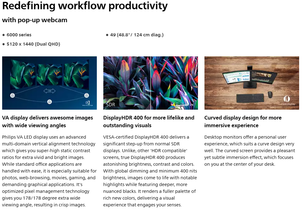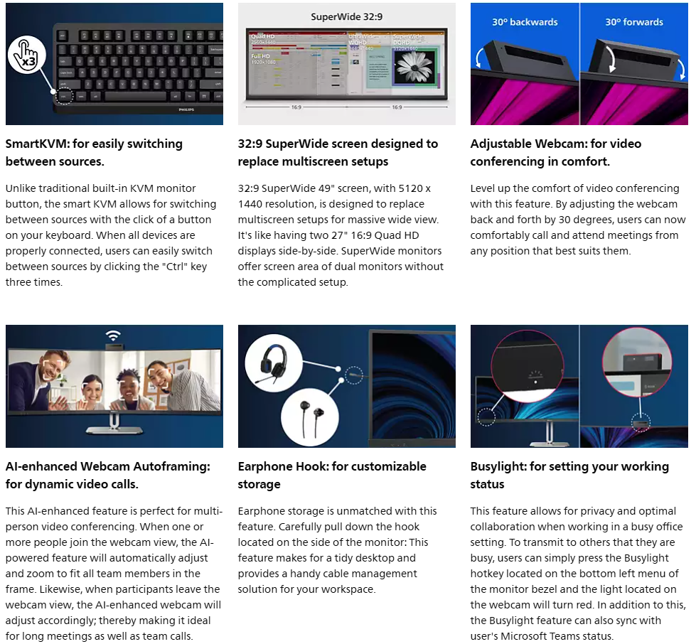 Philips SuperWide 49" 5K DQHD Curved Thunderbolt Video Conferencing Monitor (100W USB-C PD + Docking + Webcam)
