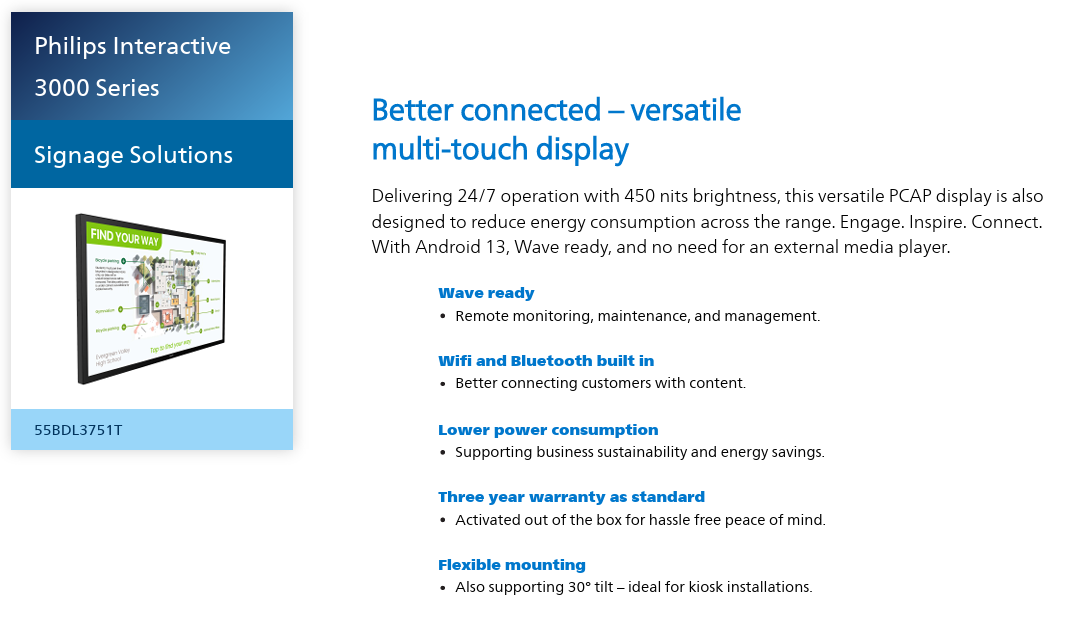 Philips T-Line 55" Android 13 24/7 Multi-Touch Signage Display