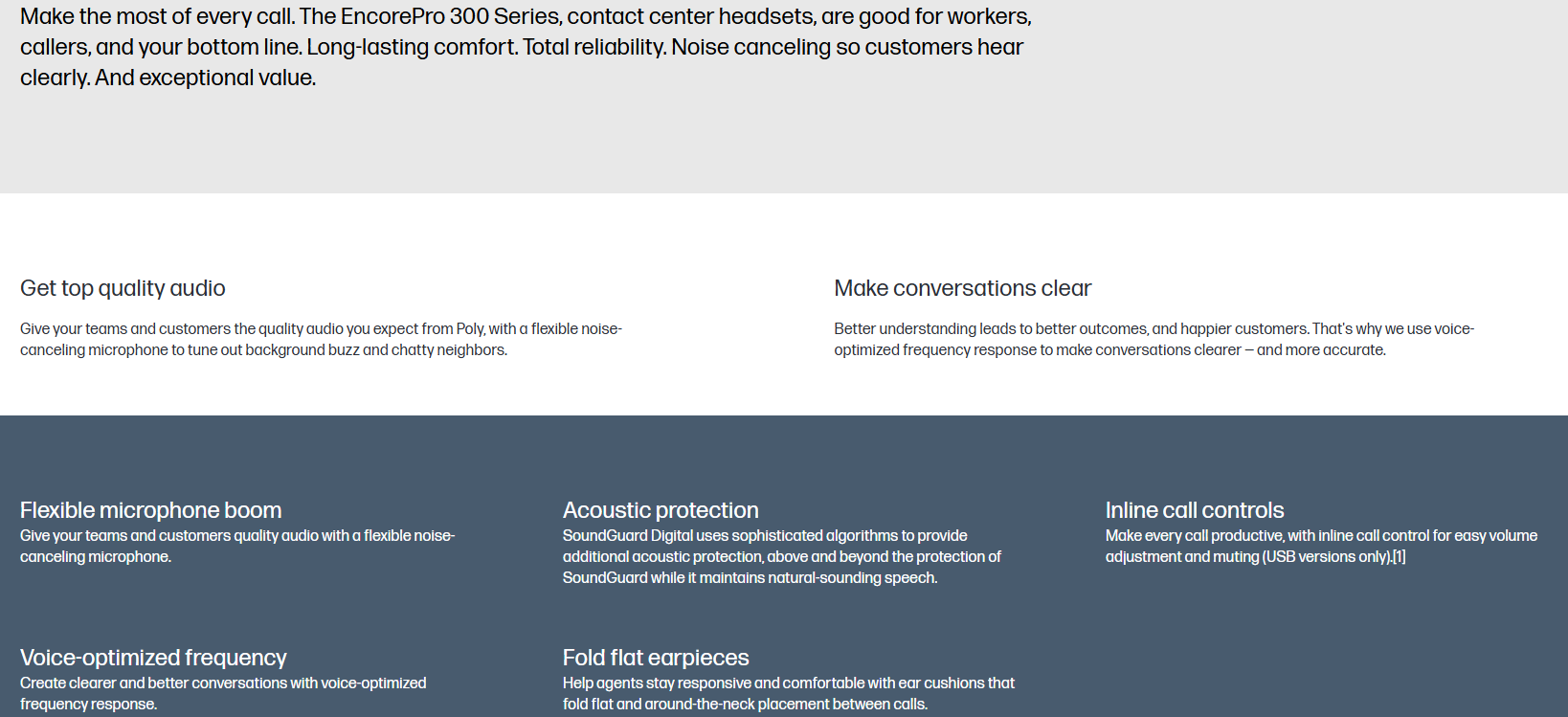 Poly EncorePro 310 USB-C Monoaural Headset TAA