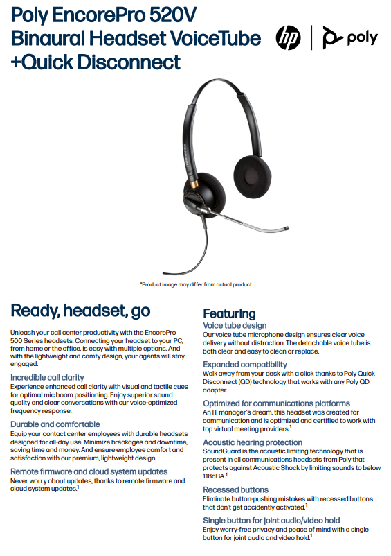 Poly EncorePro 520V Voice Tube Binaural Headset with Quick Disconnect – 783P9AA