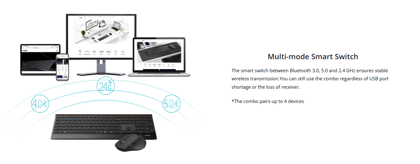 RAPOO 9500M Wireless Keyboard & Mouse Combo