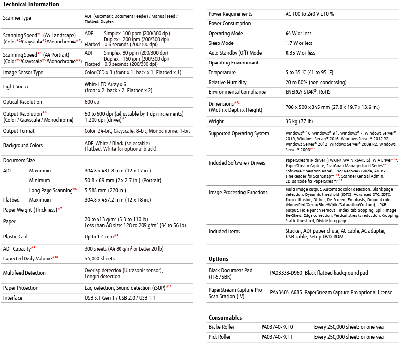 - Comes with PaperStream IP and PaperStream Capture providing advanced image processing functions