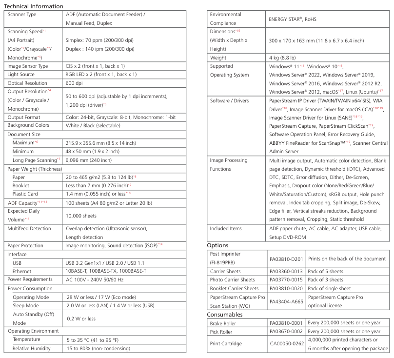 - PaperStream IP and PaperStream Capture providing advanced image processing functions, with PaperStream Capture Pro software as a premium option