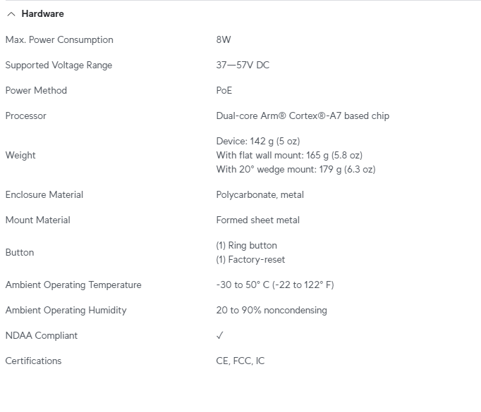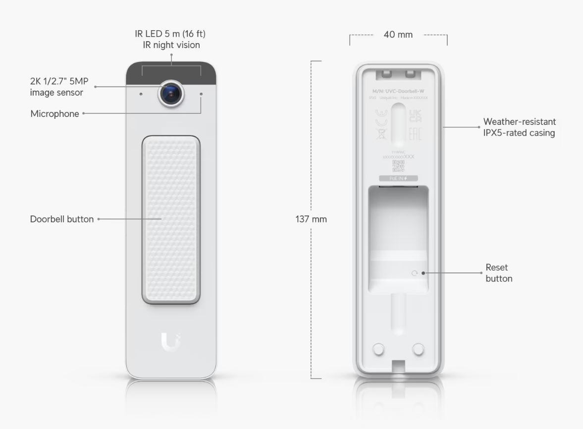 • Ubiquiti UVC-Doorbell-Lite-W, Compact PoE Video Doorbell With Two-Way Audio, Versatile Mounting Options, White