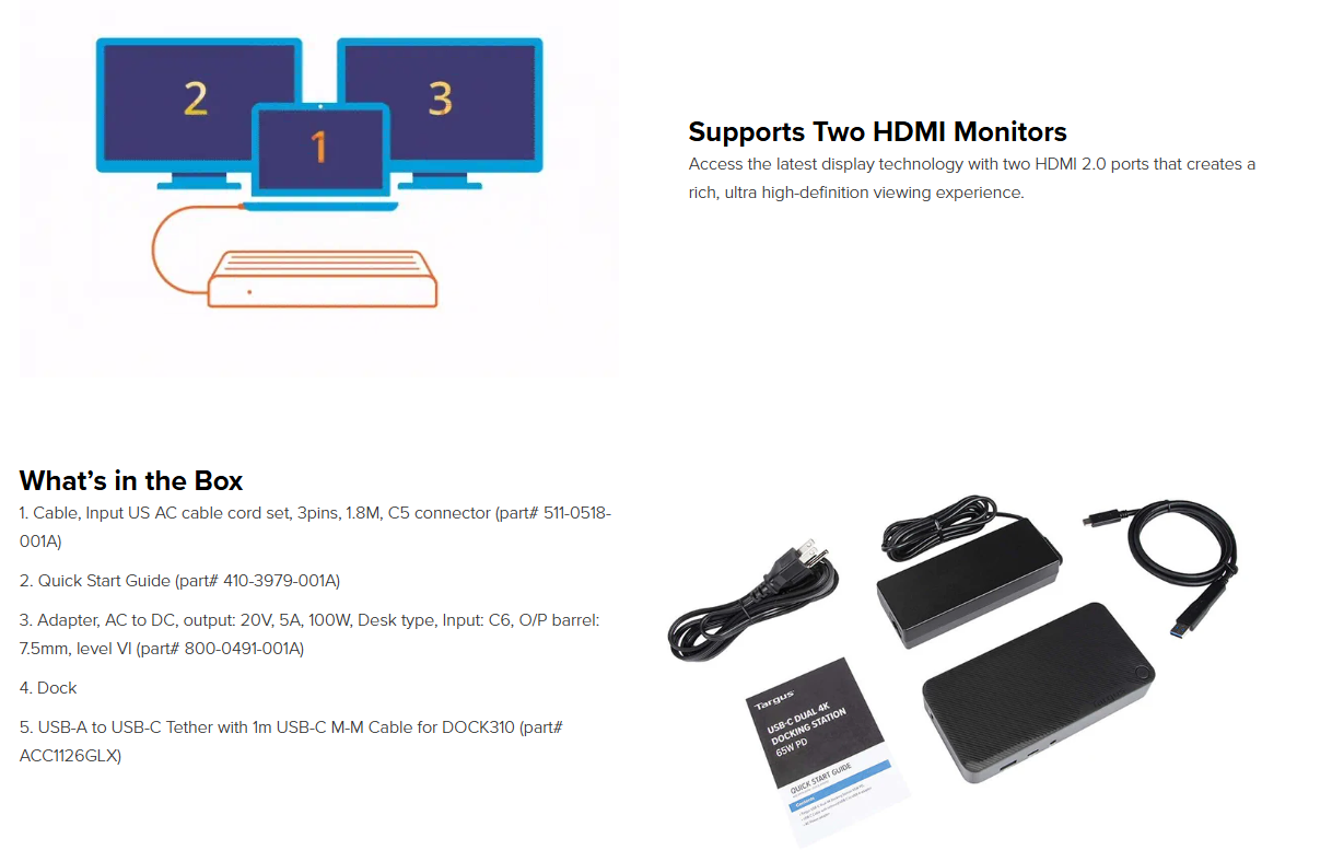 - Compatible with Targus VESA Mounting Bracket (ACX003GLZ, sold separately)