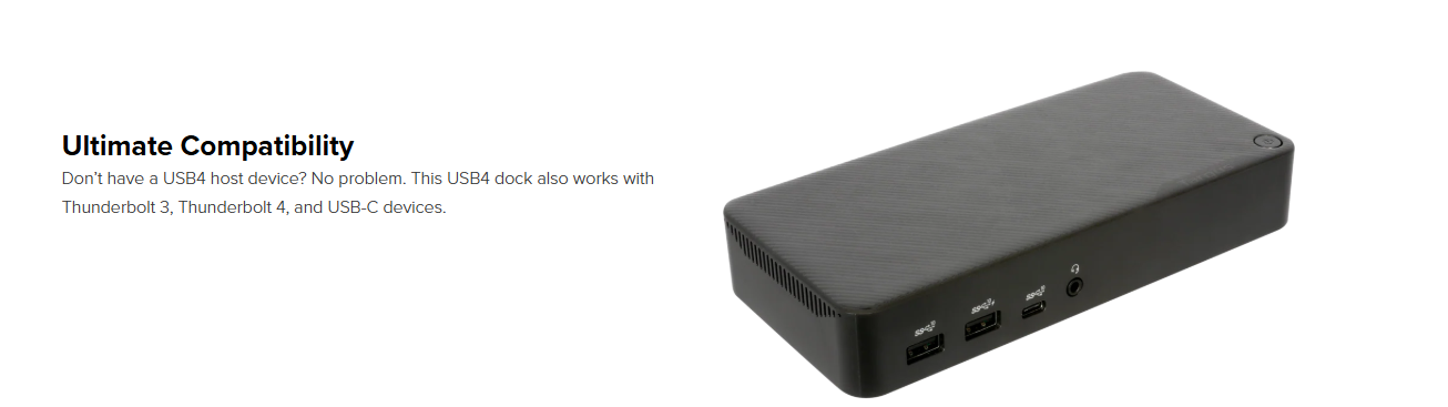Enjoy a native triple-video workstation that stays charged and at the ready with 100W power delivery. Add in USB4 connection and 2.5G Ethernet and you’ll experience a dock like no other.