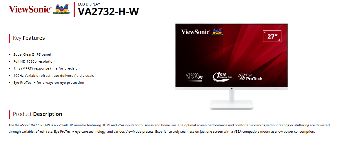 ViewSonic 27" 100Hz FHD IPS Business Monitor - White