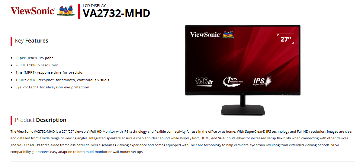 ViewSonic 27" 100Hz FHD IPS Business Monitor
