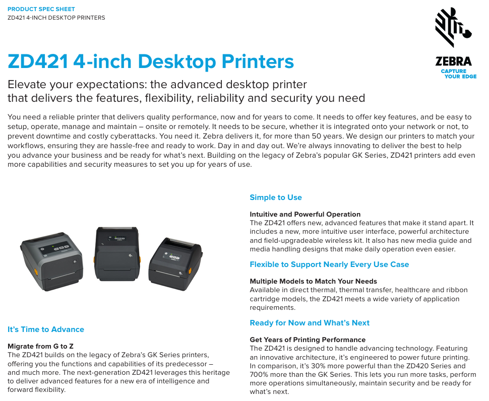 Zebra ZD421 Direct Thermal Label Printer (USB & Ethernet)